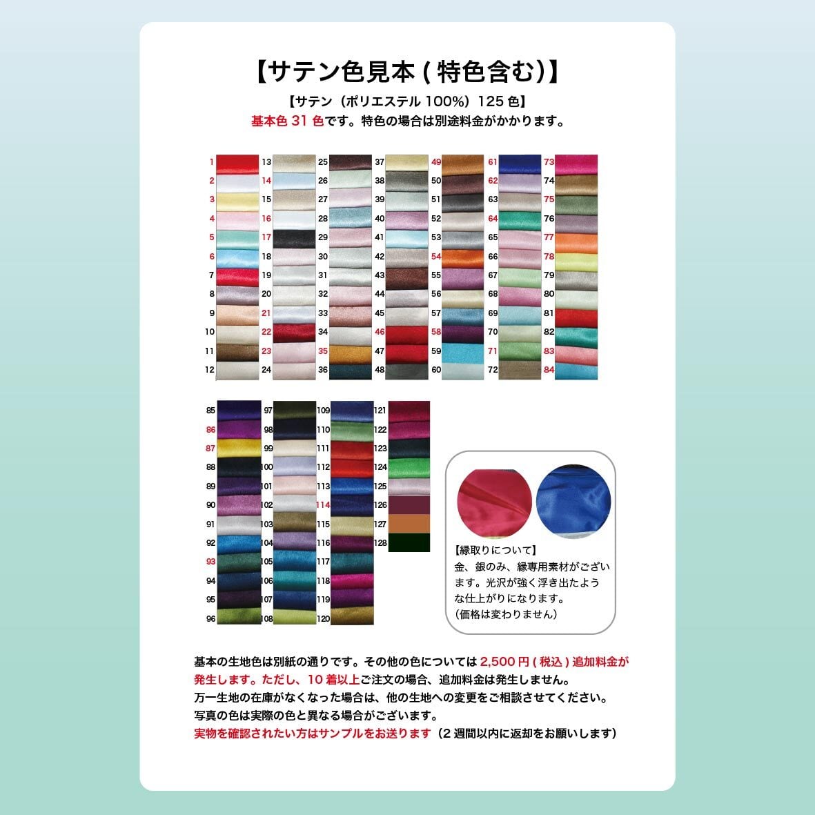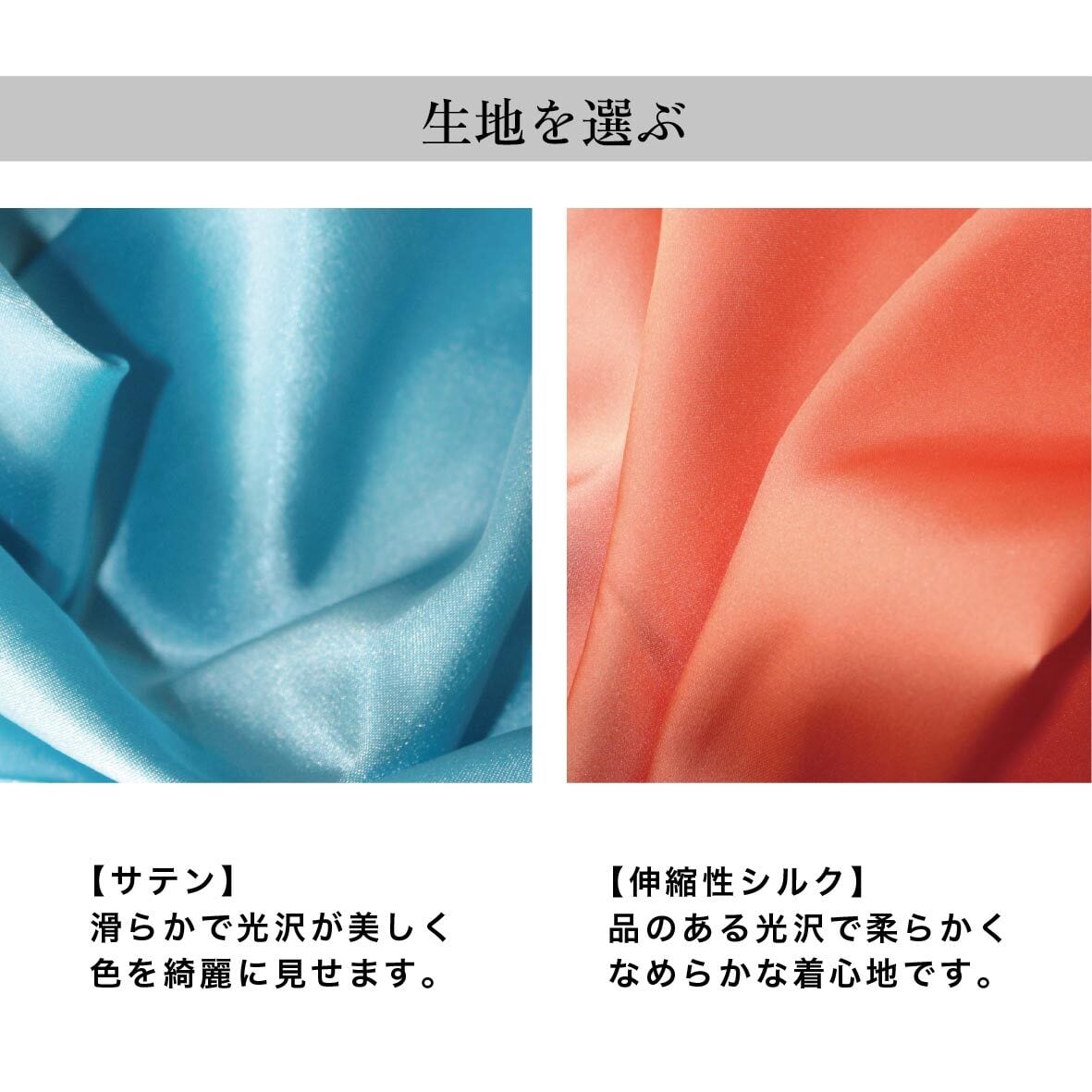 ②生地と生地の色を選ぶ(サテン生地、伸縮性シルク生地)