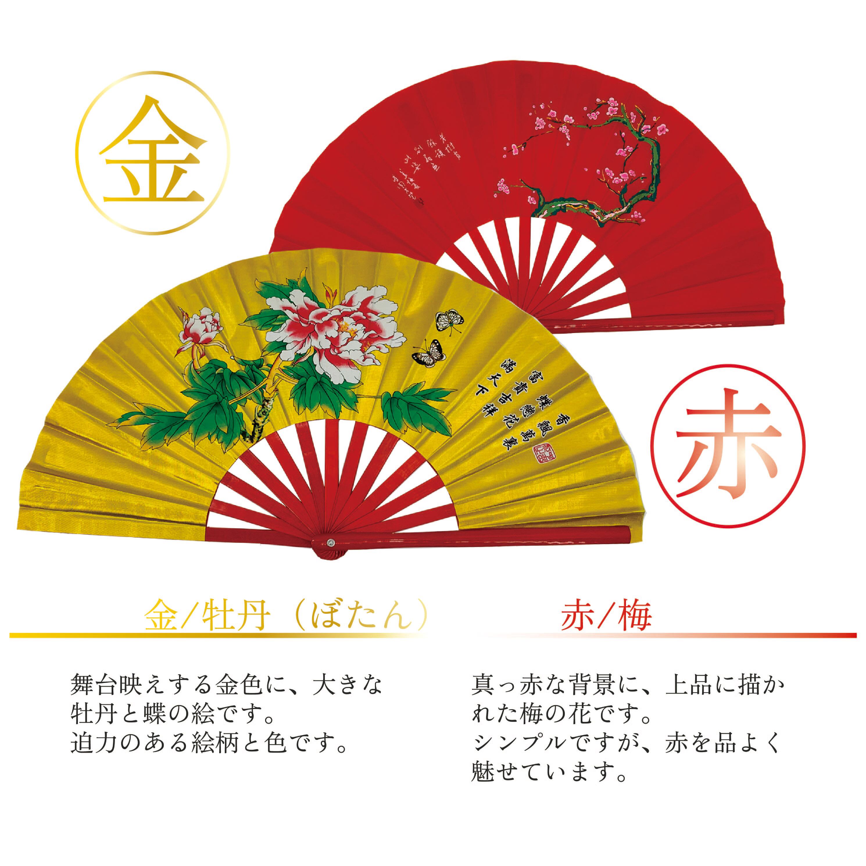 表と裏にデザインが入った扇子。団体で合わせるととても美しく映えます。表演におすすめです!